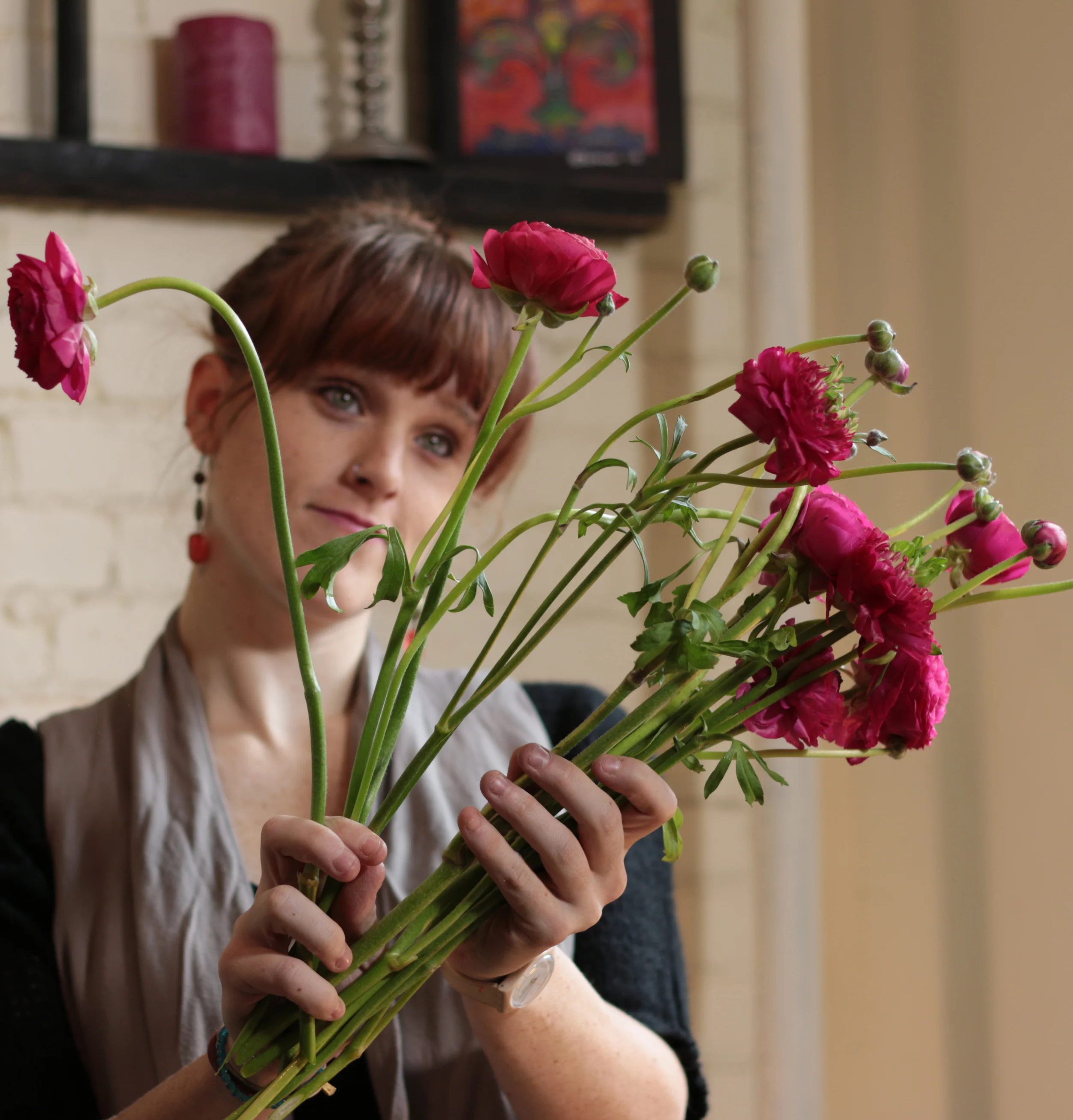 Ashley Custer’s very first job was working in a flower shop, Boyd’s in Wilmington, DE when she was 14. She worked there throughout all of high school and continued freelancing there and other Philadelphia florists on breaks in college. She attended Temple University majoring in Criminal Justice. After college, Ashley worked in a Title I school and then as a Foster Care Case Manager in Philadelphia. She passionately wanted to help improve people’s lives but felt disillusioned by the social systems set in place. When she moved to New York with her then girlfriend, now wife, Kristin Heckler, she returned to flowers to rejuvenate and reassess her career path. Working in NYC flower shops, Ashley was reminded of the joy and comfort flowers bring to people, including herself, and came up with the idea for a Flower Truck. NYC shops were already very small and the food truck model had exploded in the last ten years, even expanding to retail, but nobody in the city had started a flower truck. Finally, determined to bring light to people’s lives and make high quality flowers more affordable, she left her design job to open Uprooted Flower Truck in January 2015.